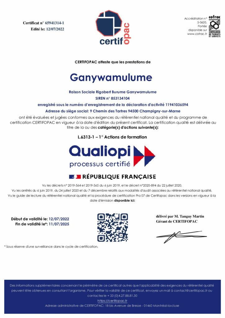 La certification qualité a été délivrée au titre de la catégorie d’action suivante : Action de formation